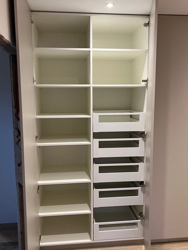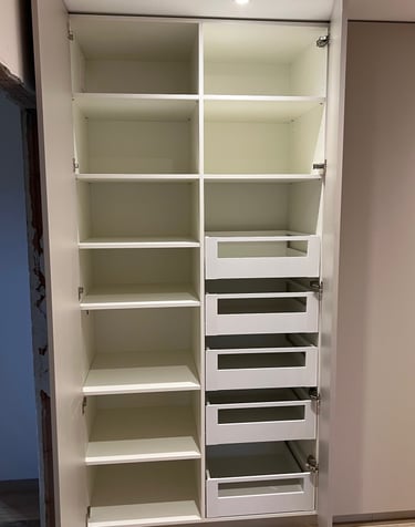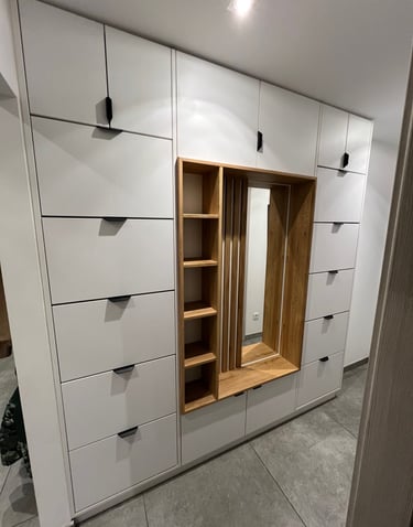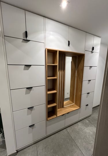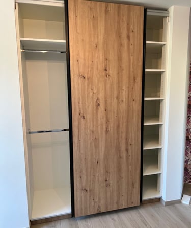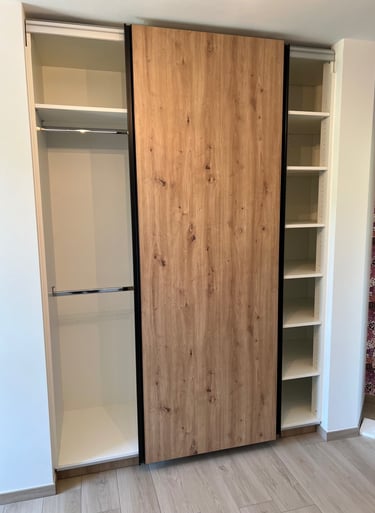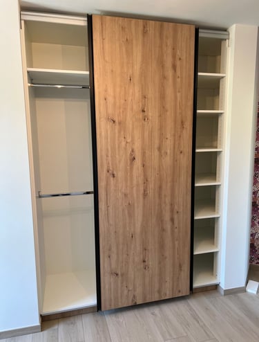 Nous créons des placards sur mesure, alliant artisanat et design, pour répondre à vos besoins spécifiques et embellir votre intérieur avec des pièces uniques et personnalisées.